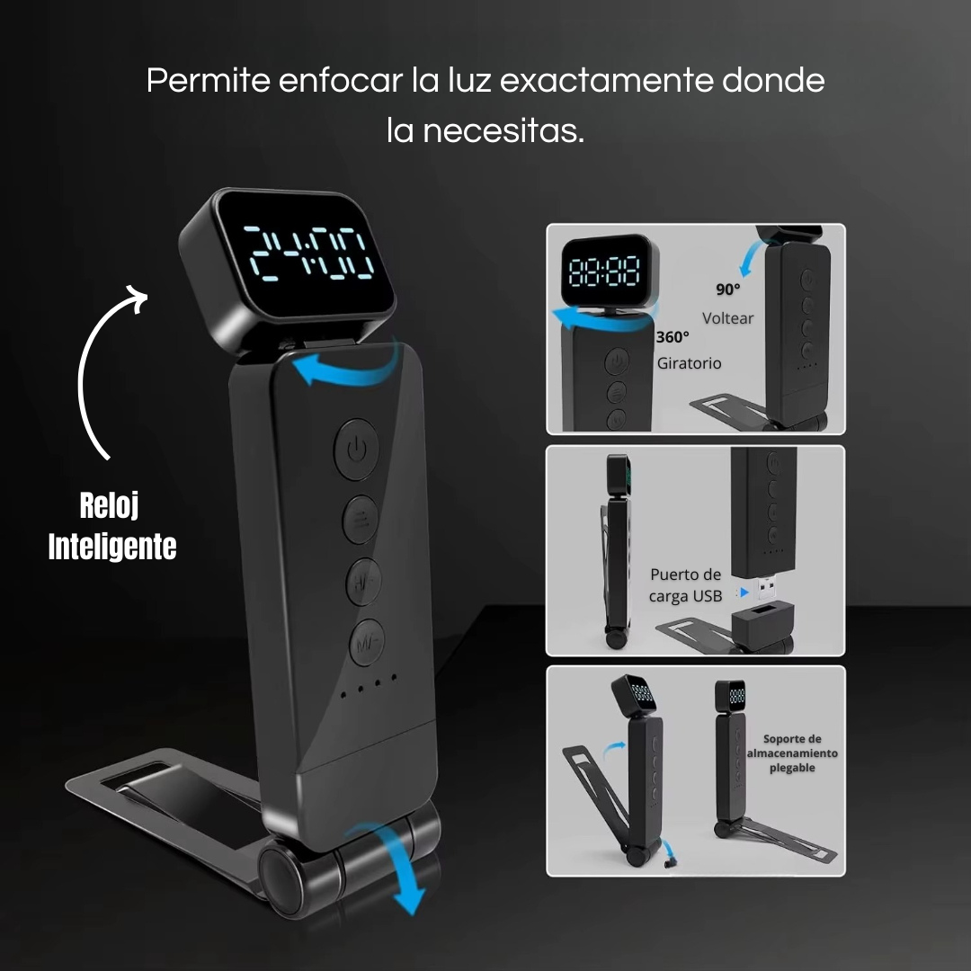 Compacta, recargable y ajustable, está diseñada para acompañarte en tus noches de estudio o descanso, ofreciendo la iluminación perfecta sin cansar tus ojos.
